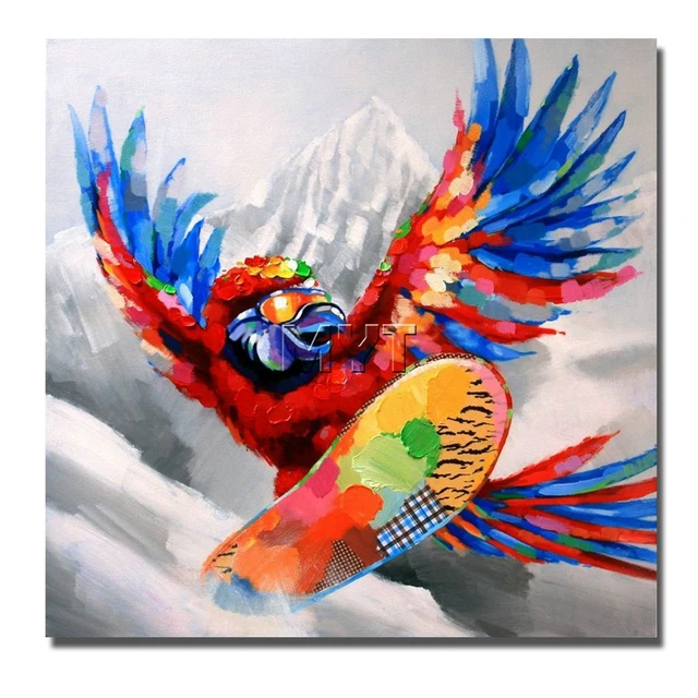 Us 15 0 Parrot Oil Painting Abstract Animal Paly The Skateboards Nice Design Oil Panting Fine Art For Home Wall Decoration In Painting Calligraphy – Download