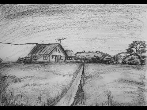 Drawing of scenery in pencil. How to draw natural landscapes. No less interesting than the picture. Picture photo painting natural scenery mountain village village underwater city black white crayon mountains forest rice fields rural hd pencil sunset.