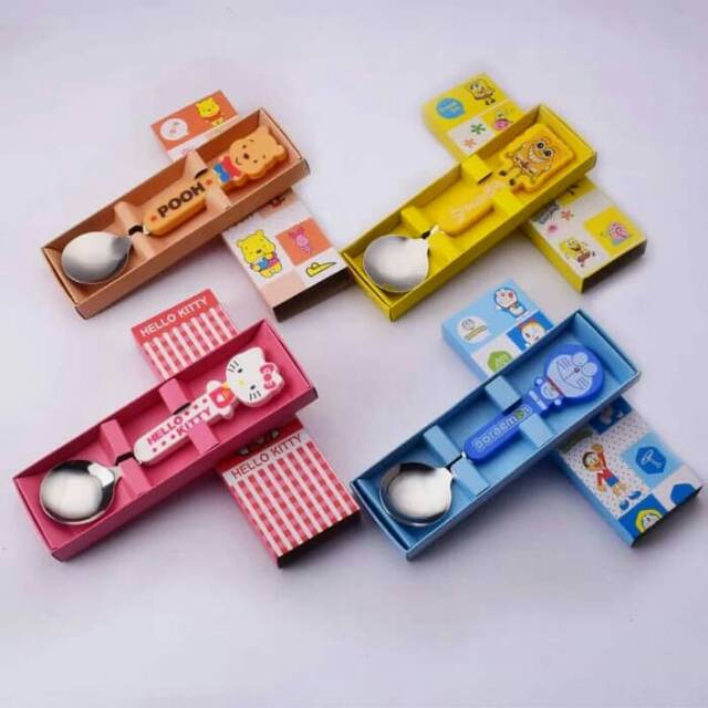 Mj096 Spoon Kids Handle Cute Cartoon Character Doraemon Hellokitty Winnie The Pooh Spongebob – Download